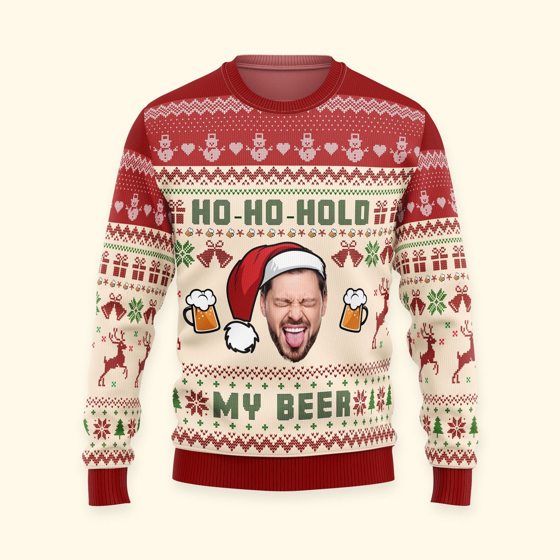 Ho-Ho-Hold My Beer - Personalized Photo Ugly Sweater