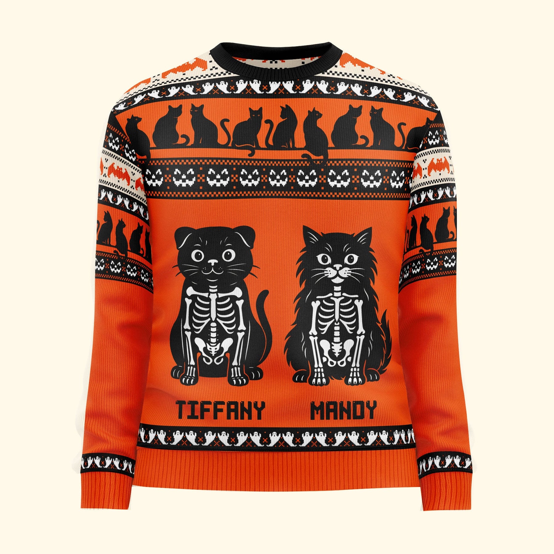 Pumpkins Cats Dogs Skeleton Halloween Fall Witch - Personalized Halloween Sweater