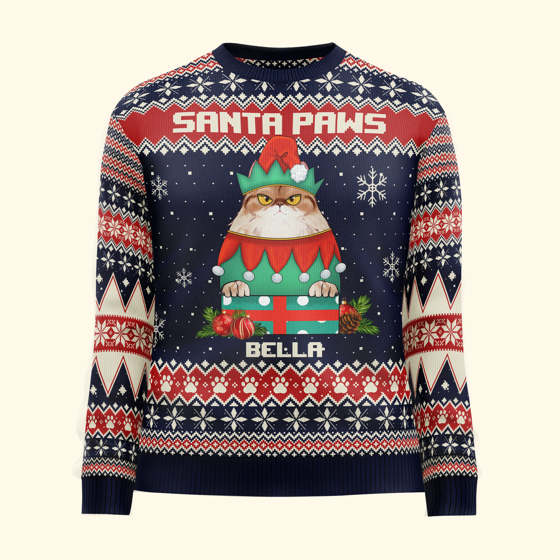 Santa Paws Christmas Sweater - Personalized Ugly Sweater
