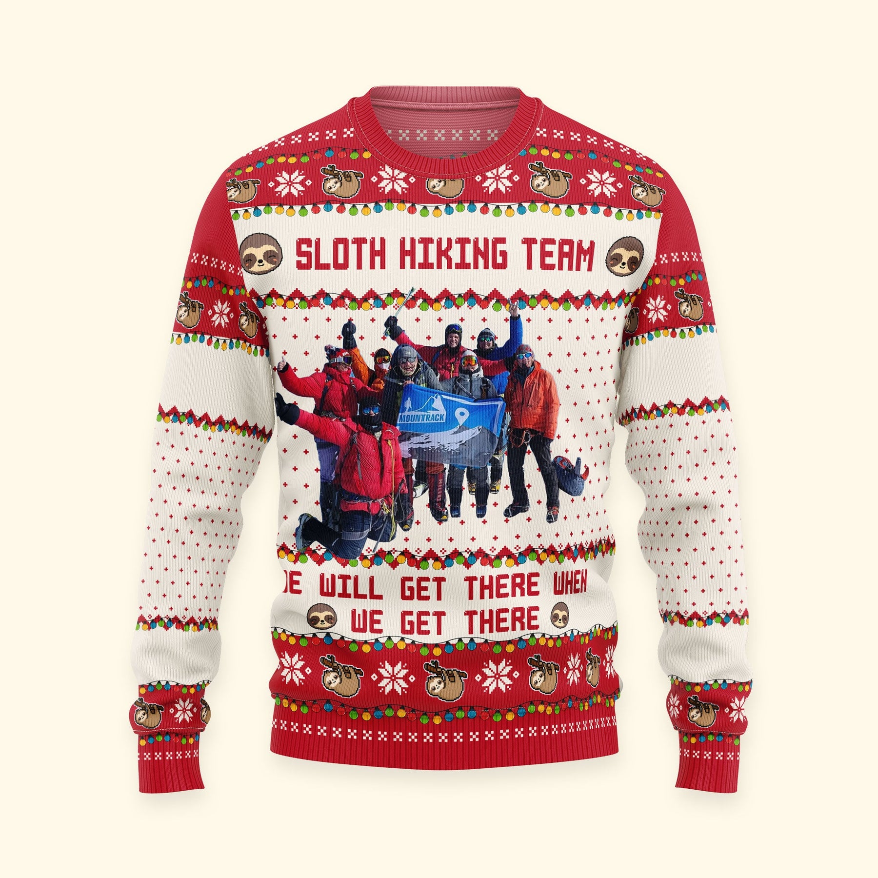 Sloth Hiking Team - Custom Hiking Photo For Team, Hiking Lovers - Personalized Photo Ugly Sweater