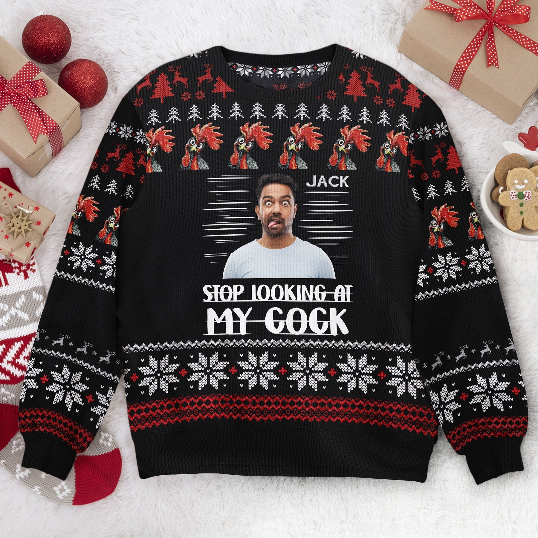 Stop Looking At My Cock - Personalized Photo Ugly Sweater